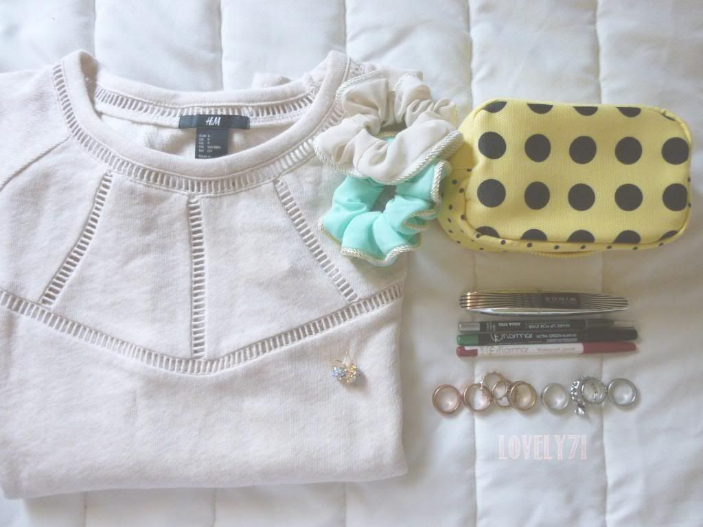 Na H&M, encontrei a camisola, simples, mas adorei o pormenor da parte de cima e fica ainda melhor vestida..não resisti aquela necessaire às bolinhas super amorosa e acabei finalmente por comprar um conjunto de 10 anéis de vários tamanhos tal como eu queria (procurava uma boa relação preço/qualidade e estes por 7€, embora um pouco caros para o que é em si, acho que foi uma boa compra..adoro os pormenores neles gravados);